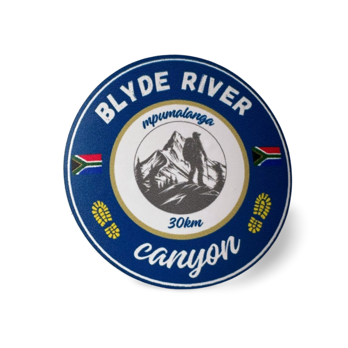 A 50mm in diameter, round fridge magnet of the Blyde River Canyon trail.