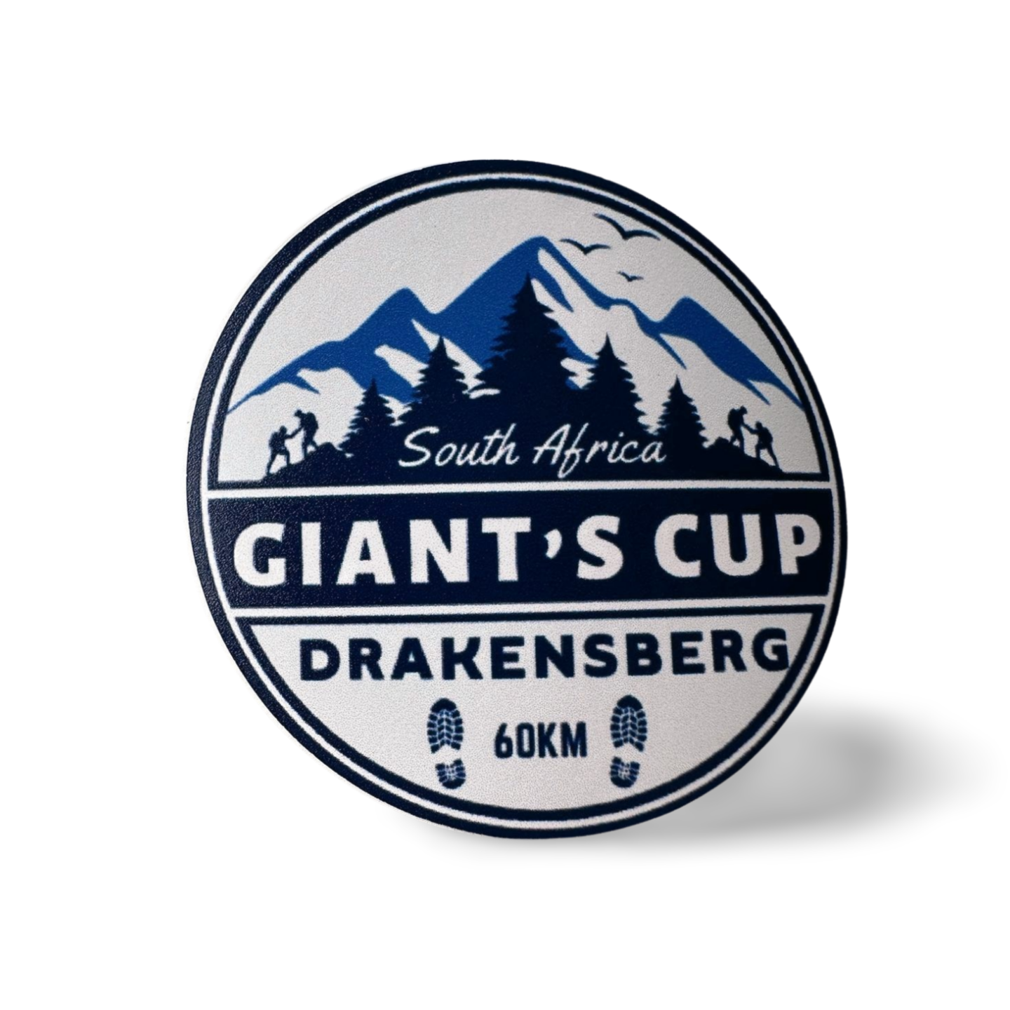 A 50mm in diameter, round fridge magnet of the Giant’s Cup Hiking trail.