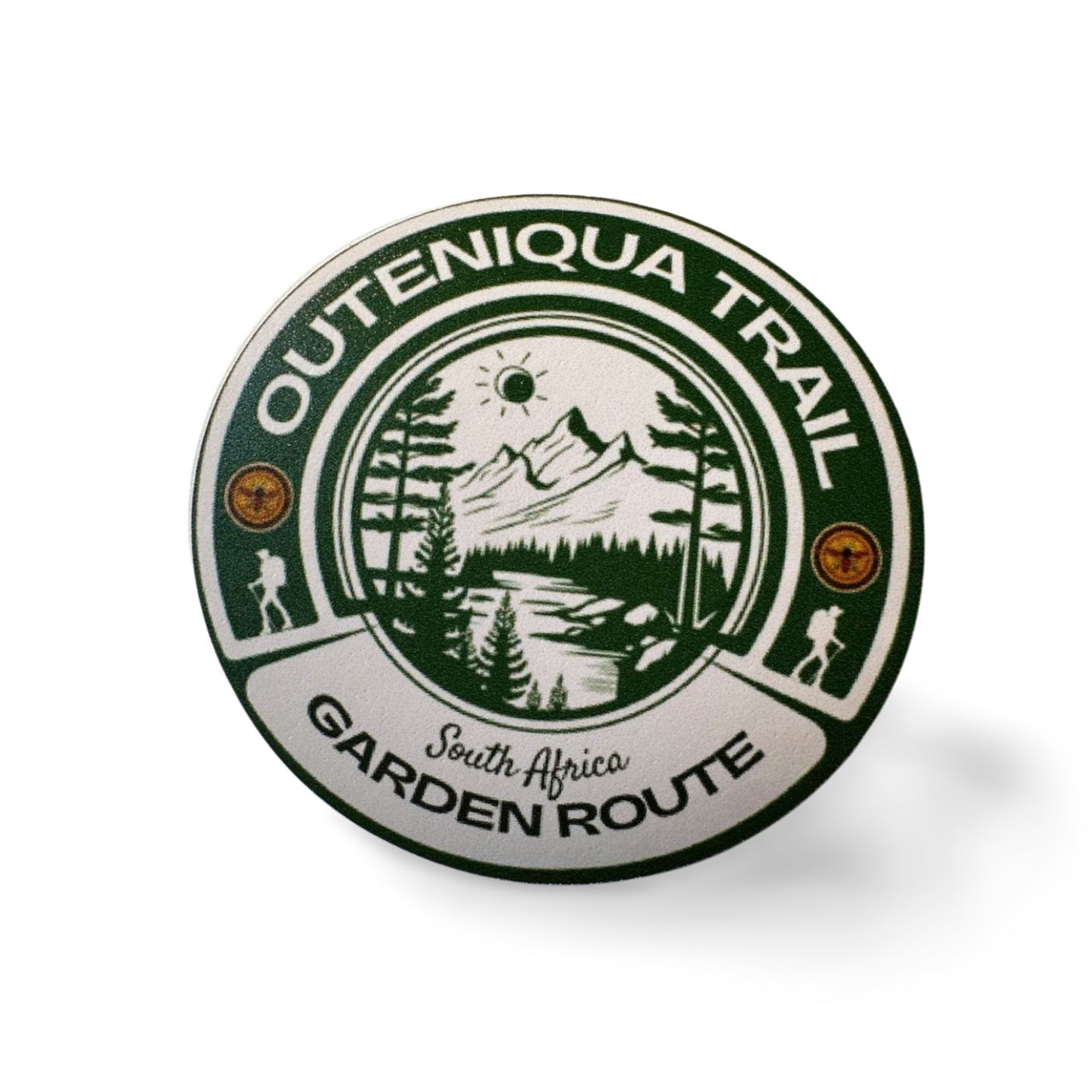 A vinyl fridge magnet of 5cm in diameter. Designed to help you tell your hiking story.