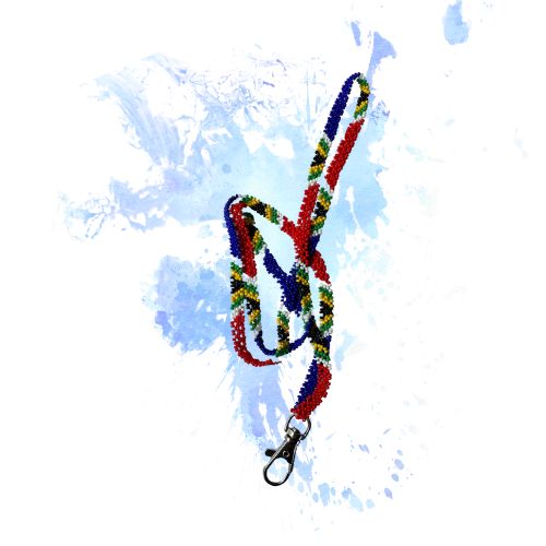 Beaded lanyard in South African colours to keep your belongings safely around your neck.