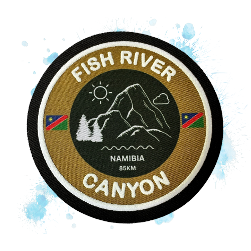 High Quality durable silk print trail badge – round, roughly 7cm in diameter.