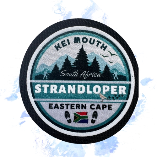 High Quality durable silk print trail badge – round, roughly 7cm in diameter.