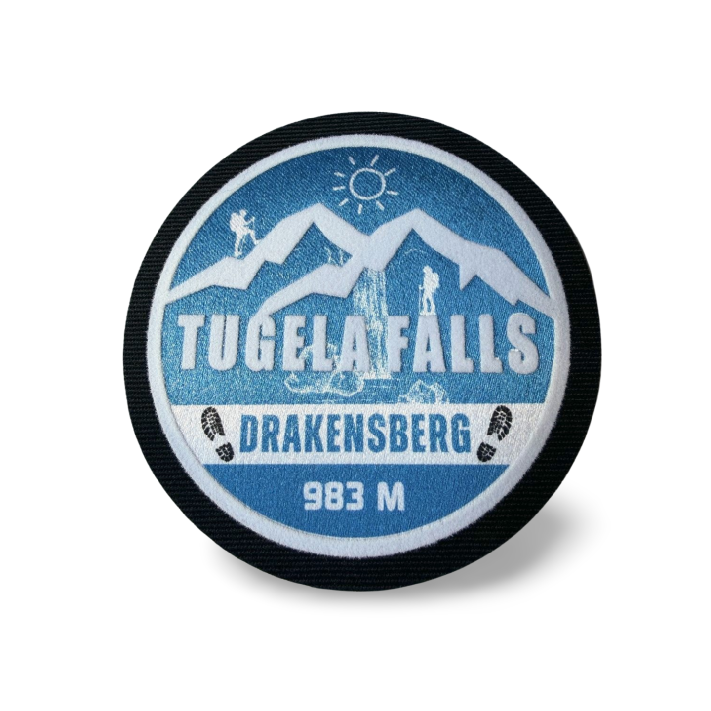 High Quality durable silk print trail badge – round, roughly 7cm in diameter.