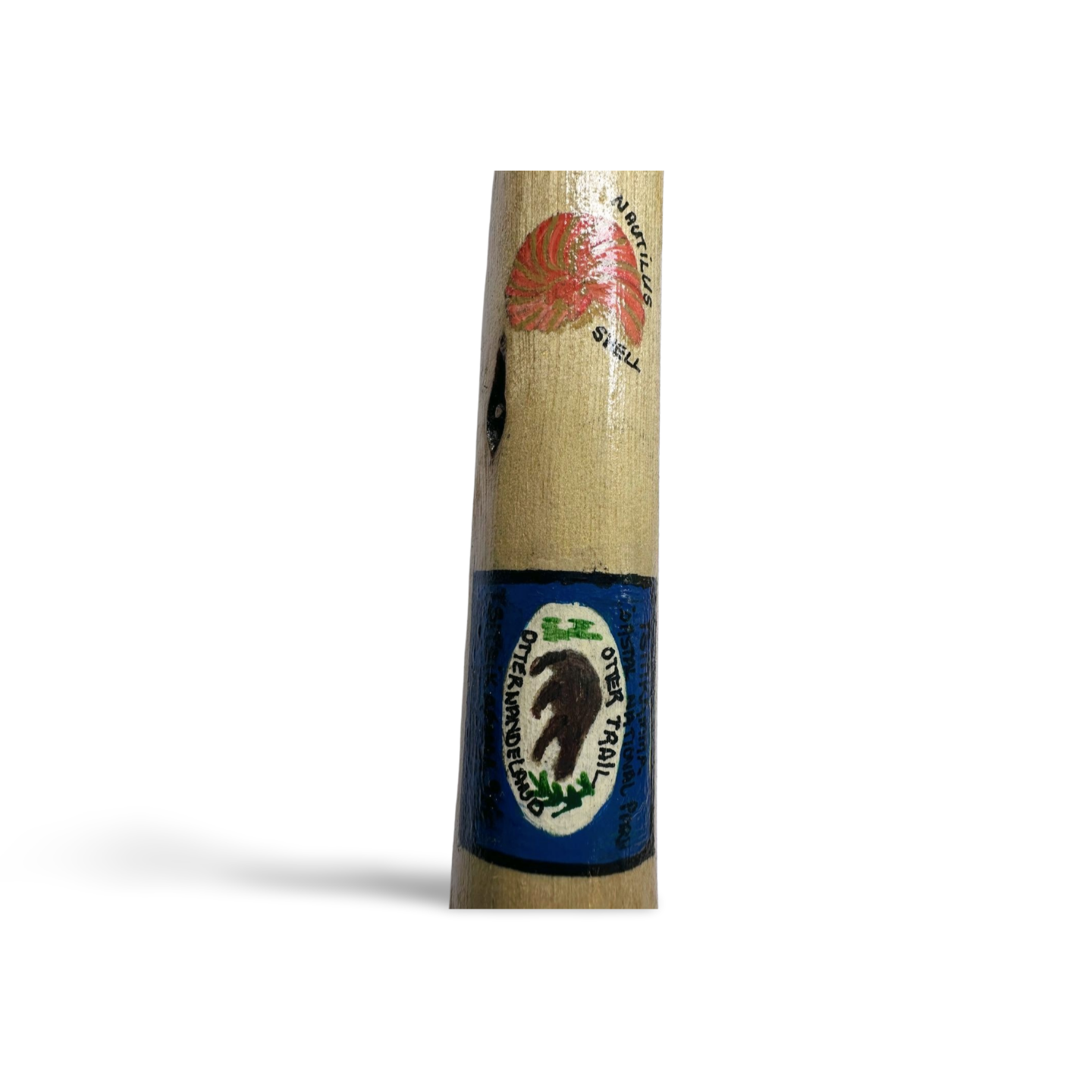 A unique 1,2m hand-painted trekking pole depicting fauna & flora that you will encounter on your Otter trail trek. This one is a beaut!