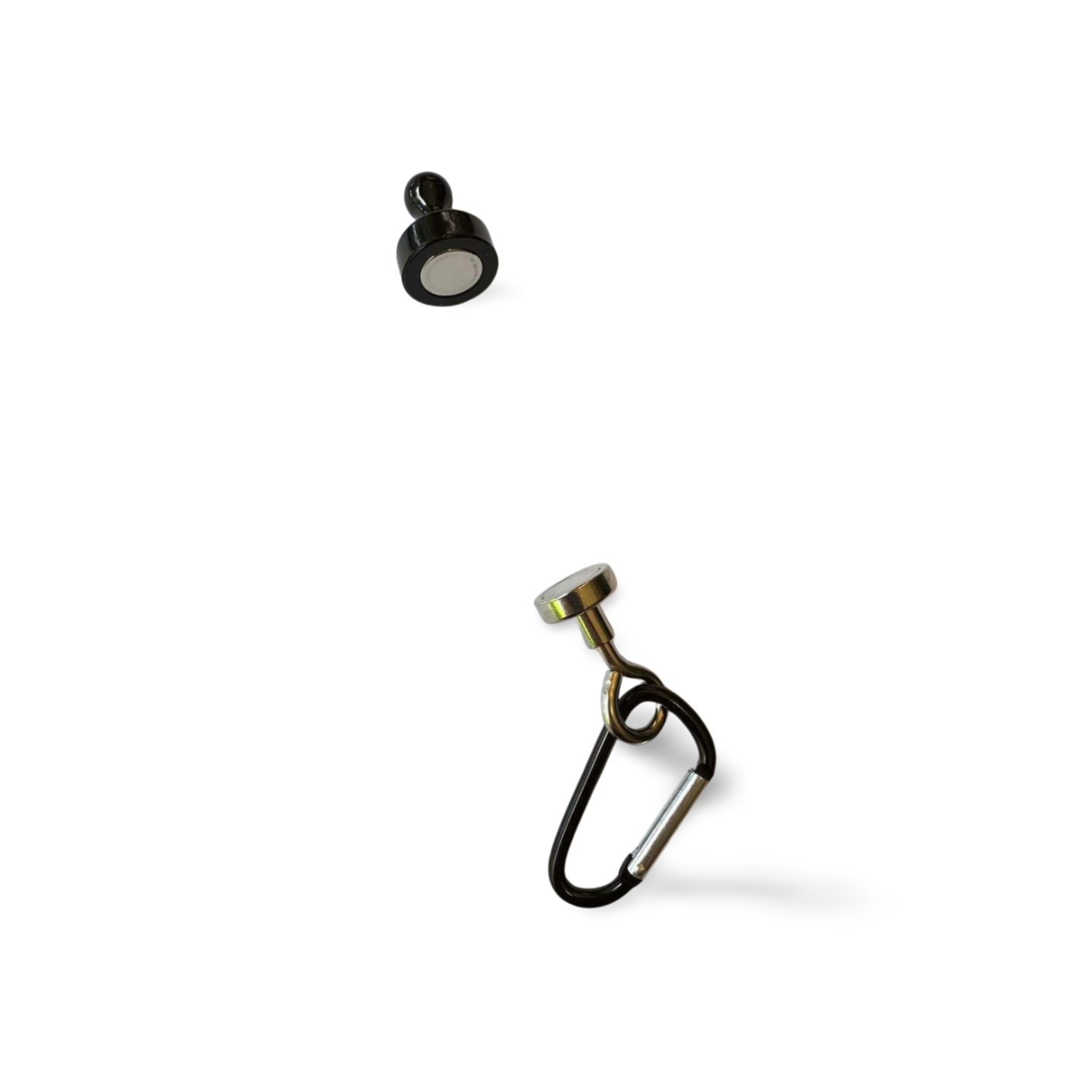 A pairing magnet with a carabiner and anker. A perfect addition to any campsite to anker and hang various items from the roof of your tent such as a light, a washing line, or items you need in quick reach! I cannot live without mine!